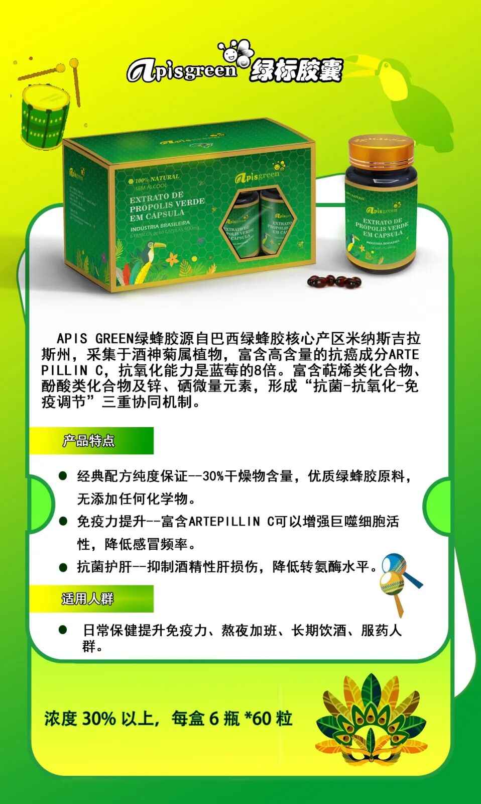 选对绿蜂胶,APISGREEN绿蜂胶软胶囊|买5送1,买10送3再送好礼!正宗巴西绿蜂胶|高含量ArtepillinC,来自巴西米纳斯吉拉斯州绿蜂胶产地,健康首选!巴西、中国均有现货,新货。巴西圣保罗