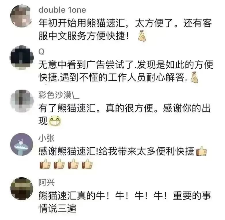 全球数百万华人的选择——200万华人选择熊猫速汇,安全快捷的优点获得了一致好评。