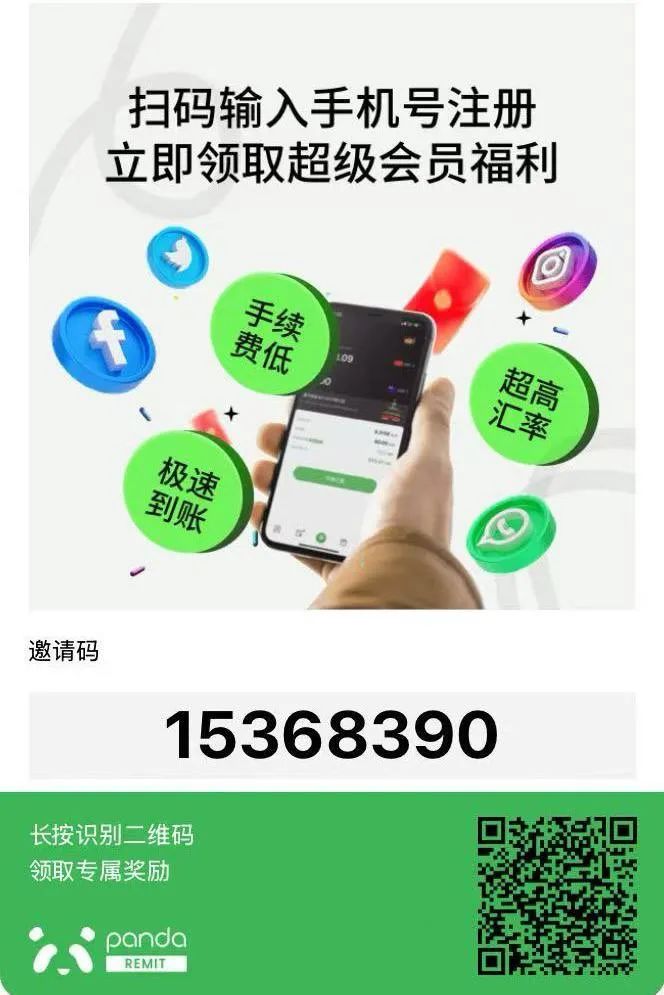 扫描下图二维码注册熊猫速汇,马上体验极速汇款并享受新客福利:
