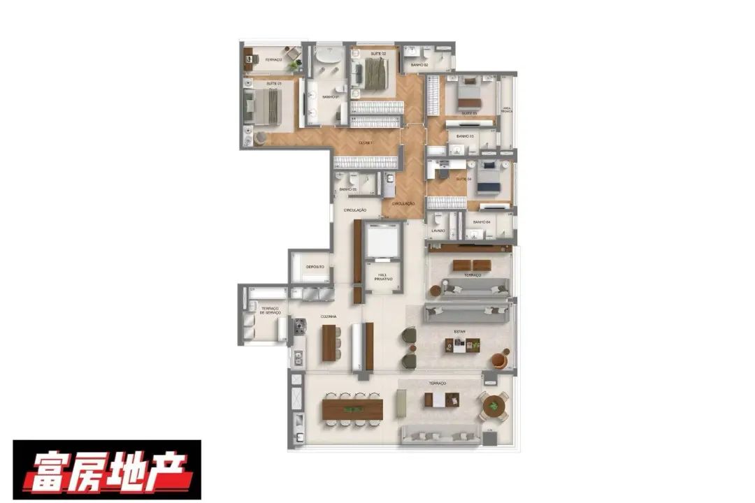 260M²-4套房大平层