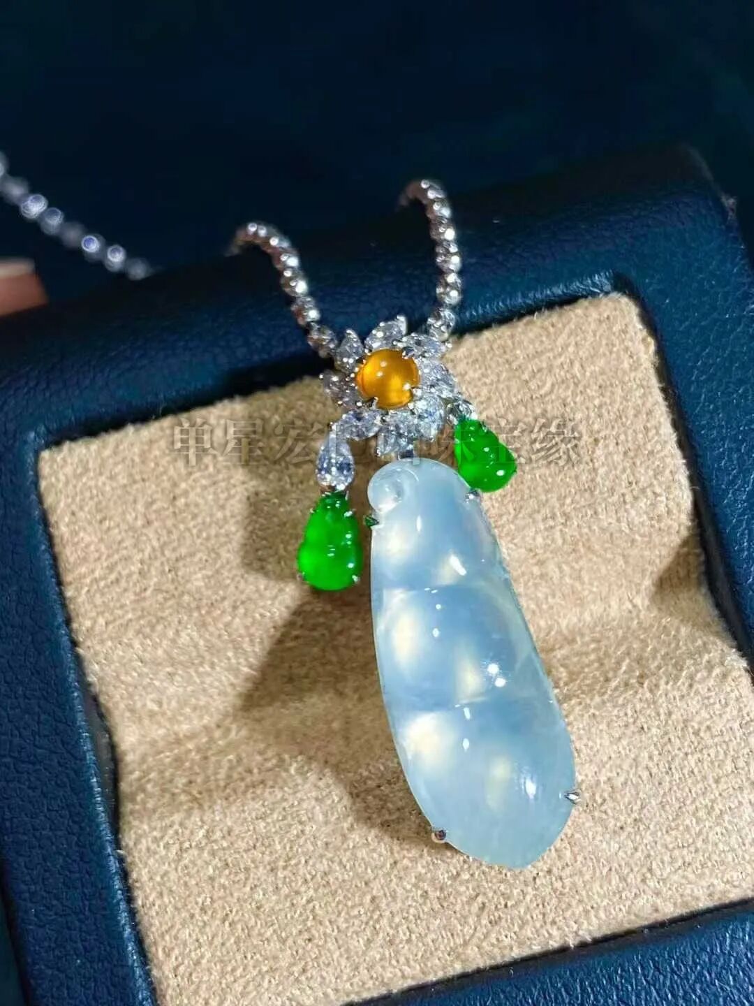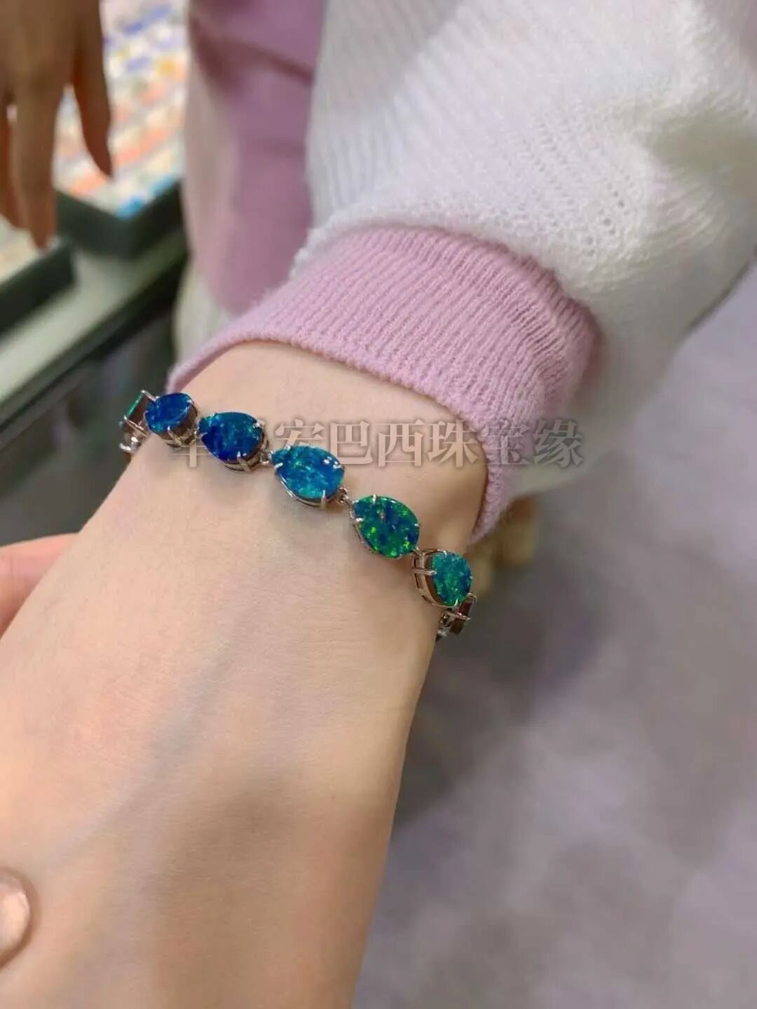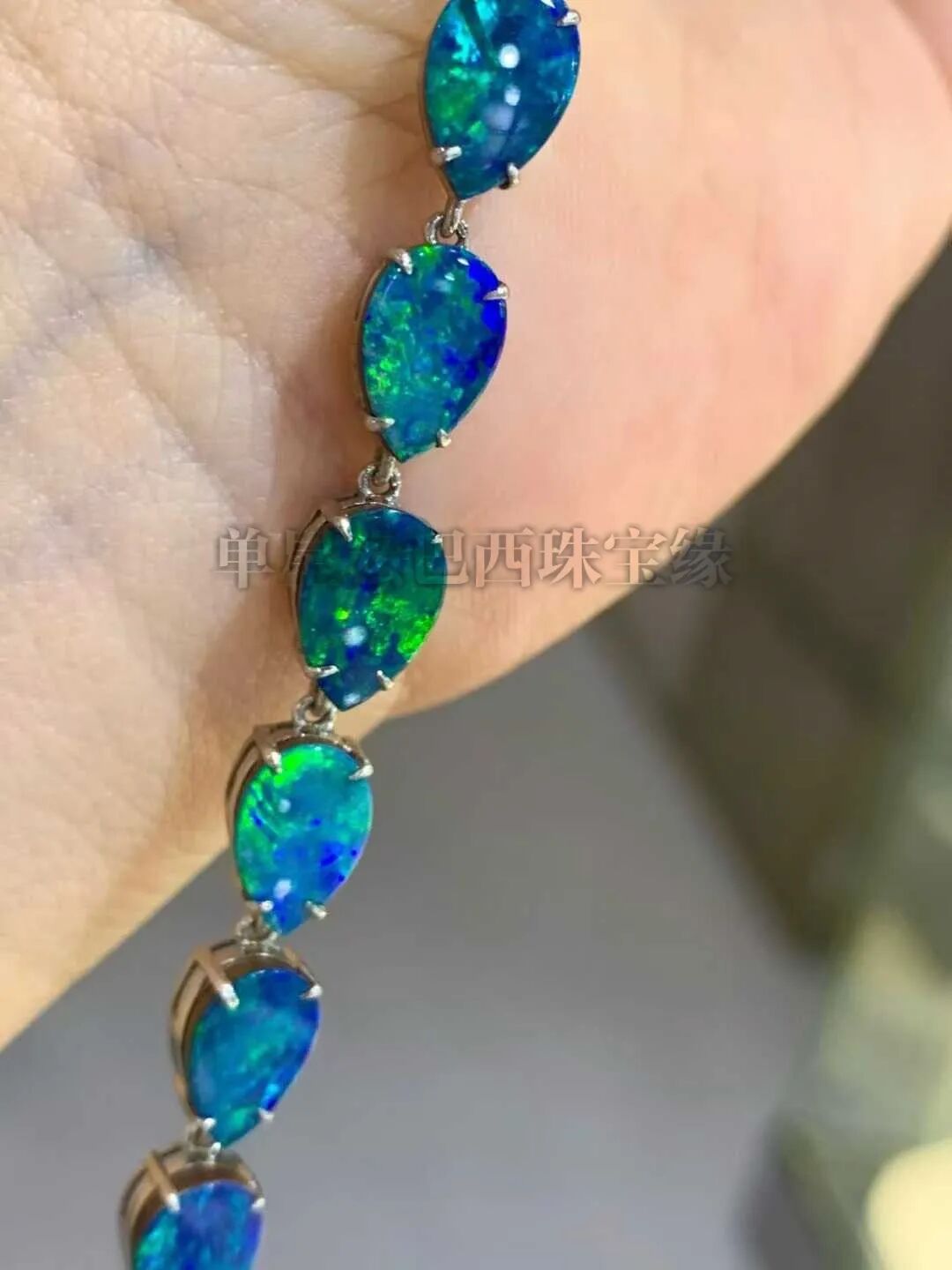 绝美天空🌌彩欧泊 高亮孔雀蓝绿色 18K白金钻石 颗颗完美浓郁