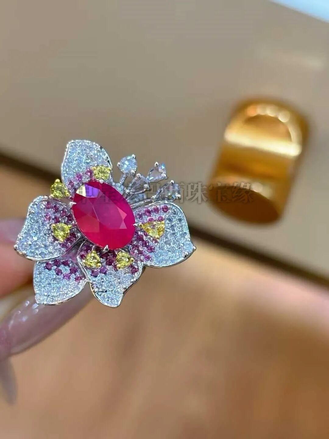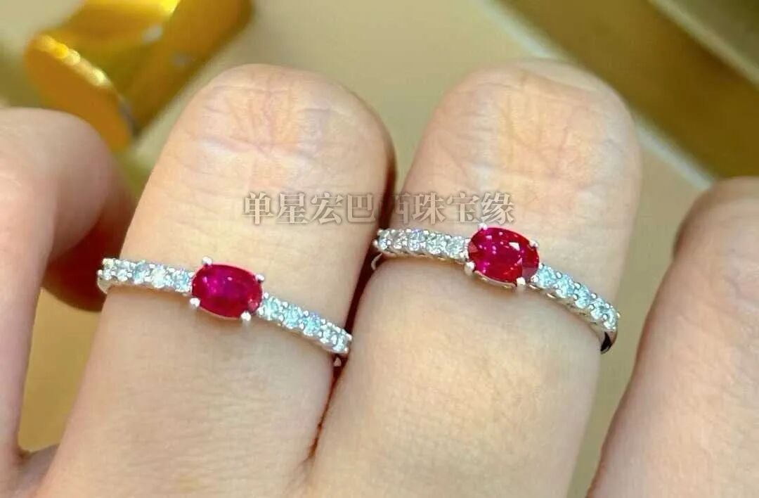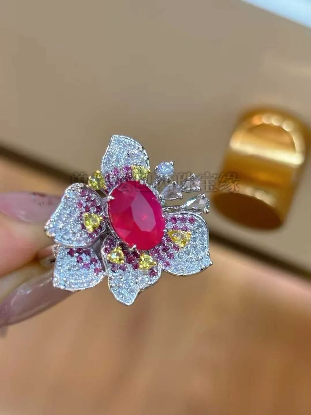 无烧鸽血红宝豪钻镶,绝美丝绒感,甜美贵气,铂金钻石彩宝豪镶