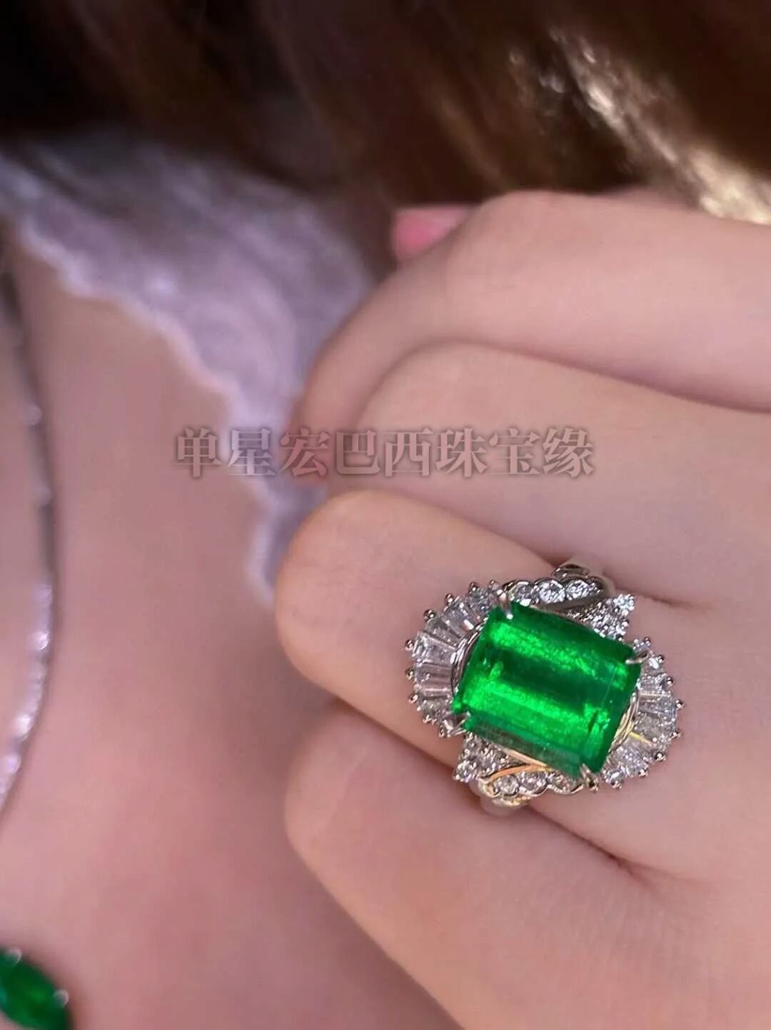 电光浓郁哥货木佐浓郁祖母绿铂金大钻豪镶