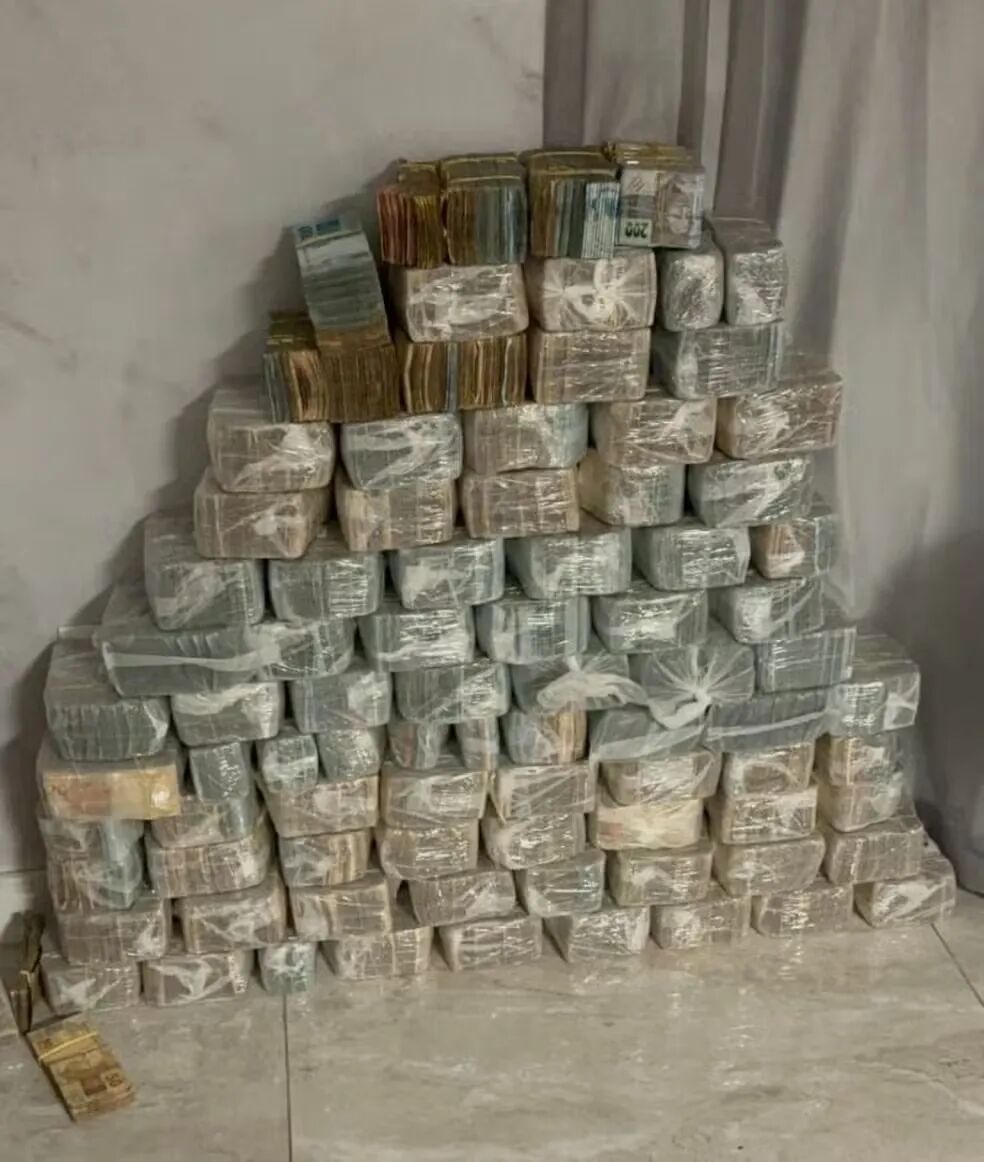 TH com dinheiro na casa do traficante Gabriel Dias de Oliveira, o Índio, em abril de 2024 — Foto: Reprodução