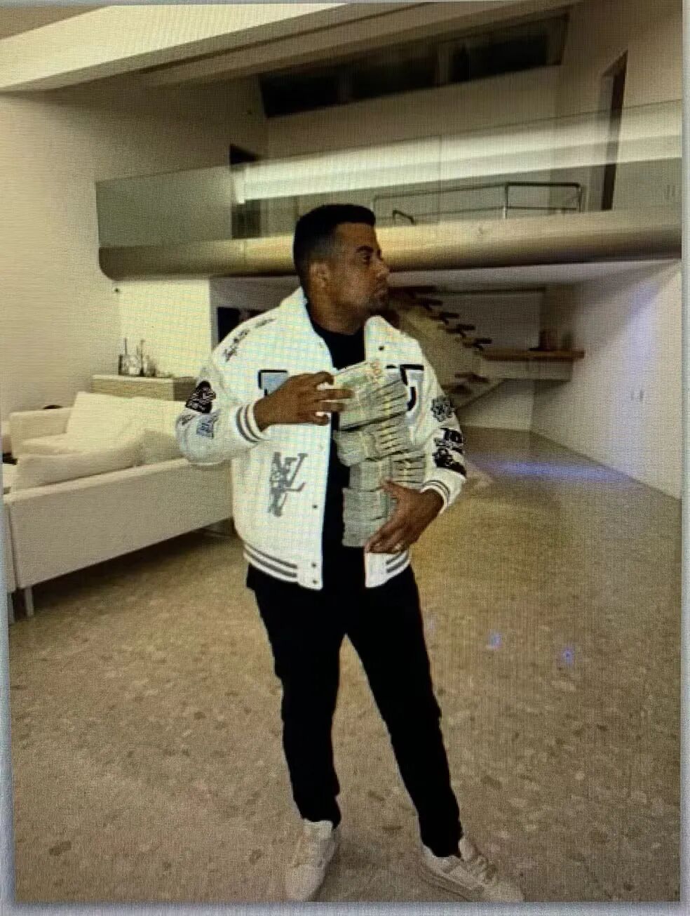 毒贩“印第安人”为这笔钱拍了一张贴在他家墙壁前的照片。