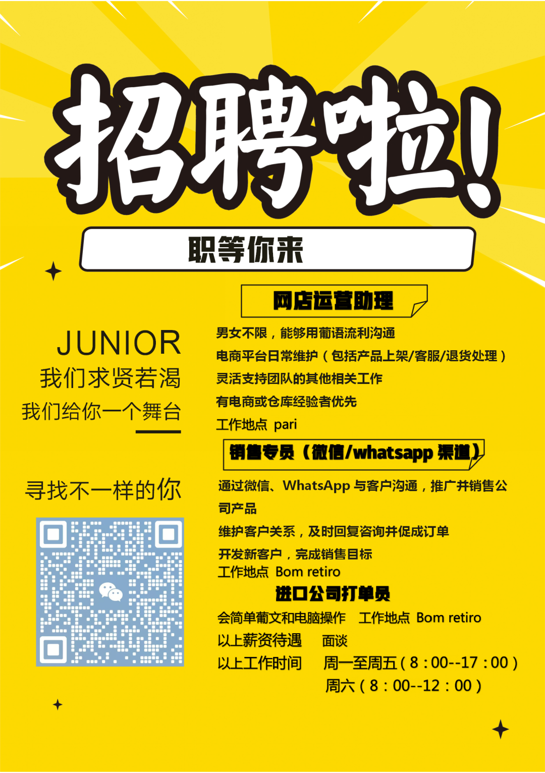 有意者请将中葡双语简历发送至公司邮箱: