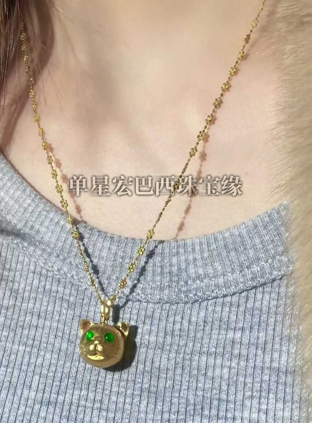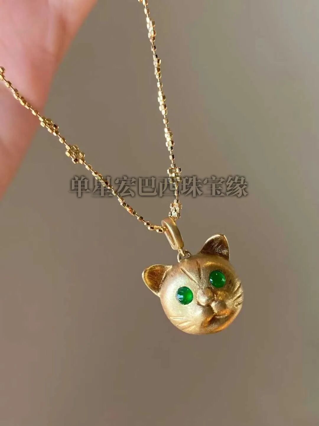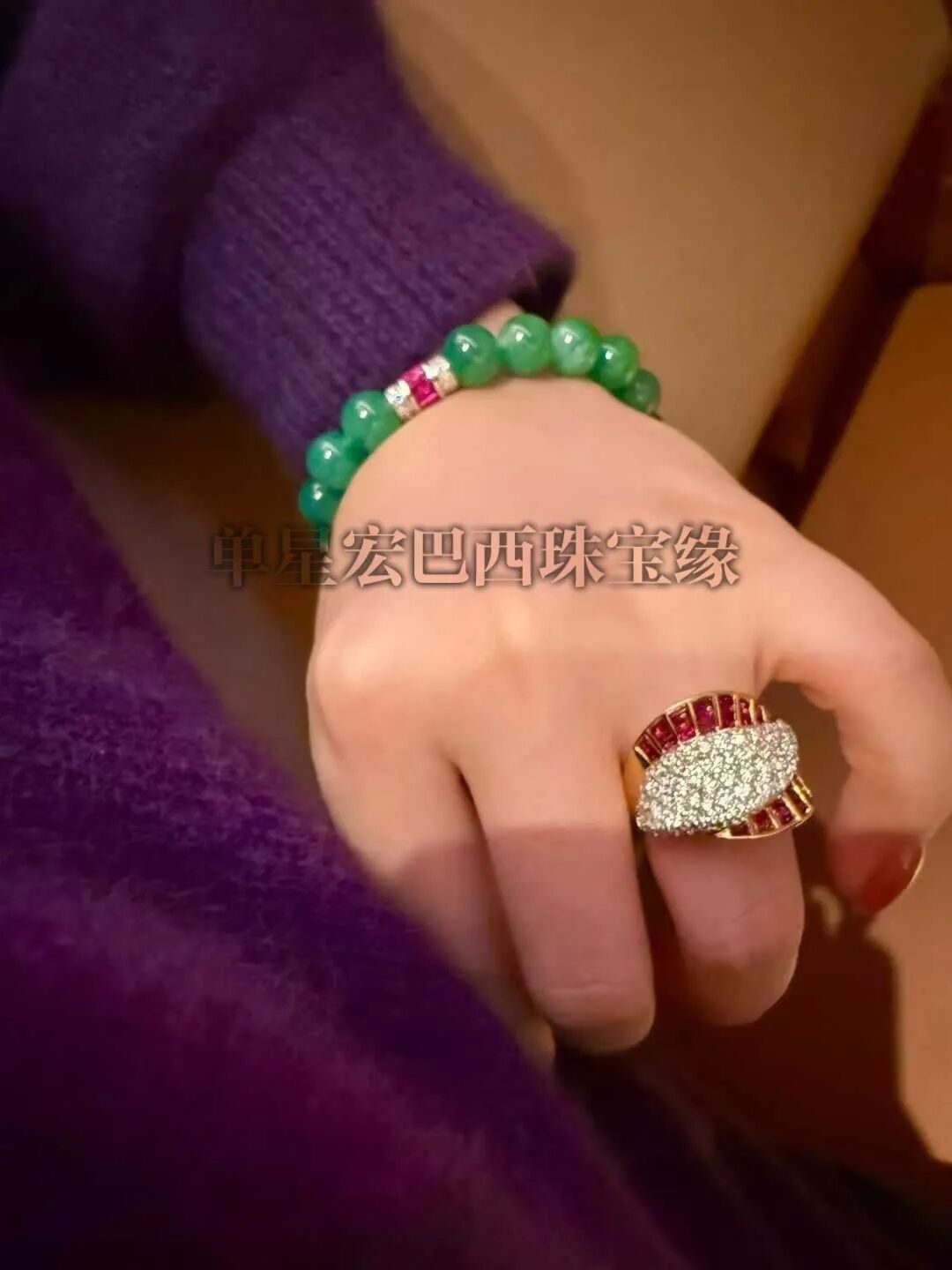 强荧光绿玻璃种翡翠,18k金拉丝工艺。