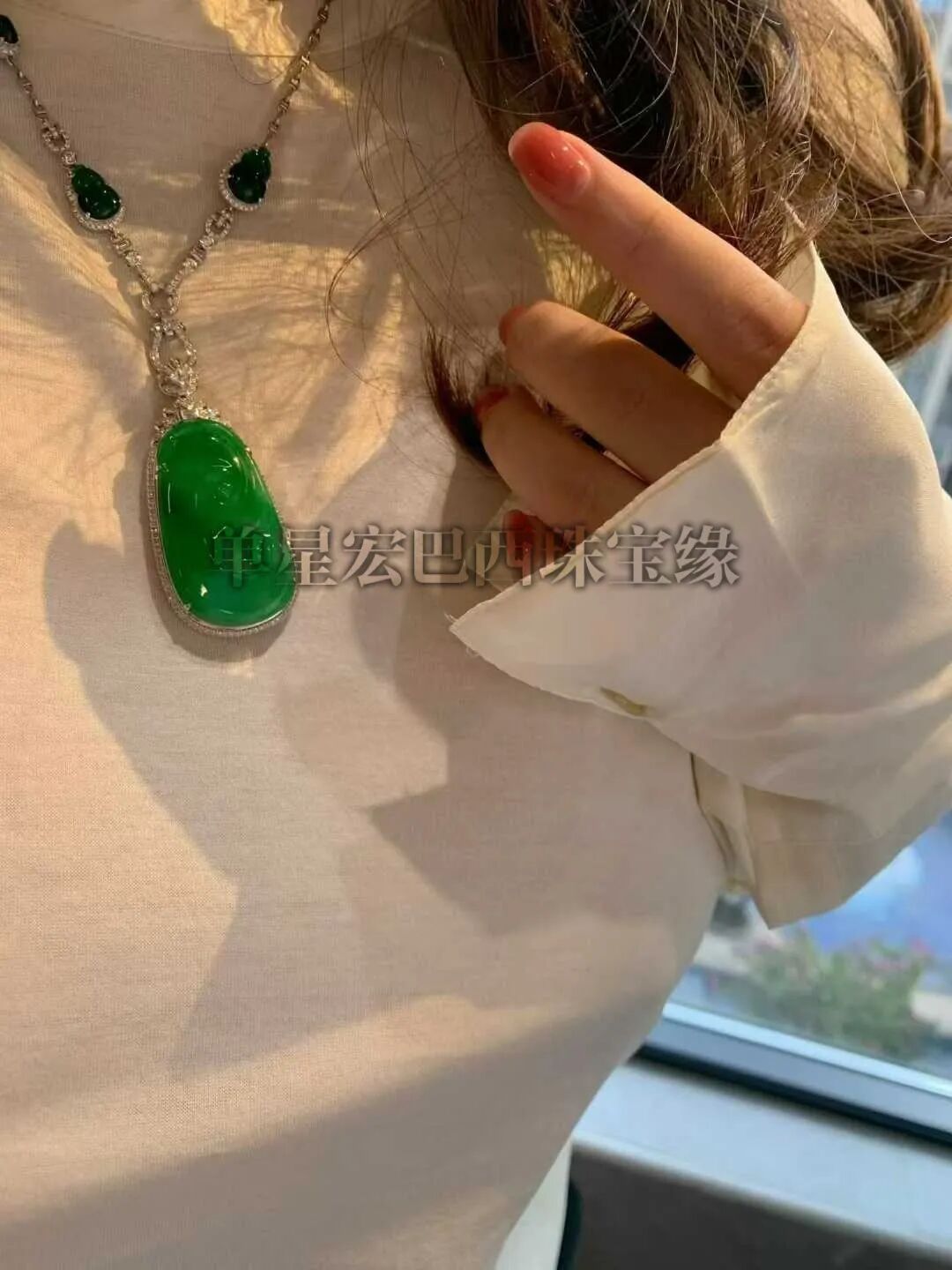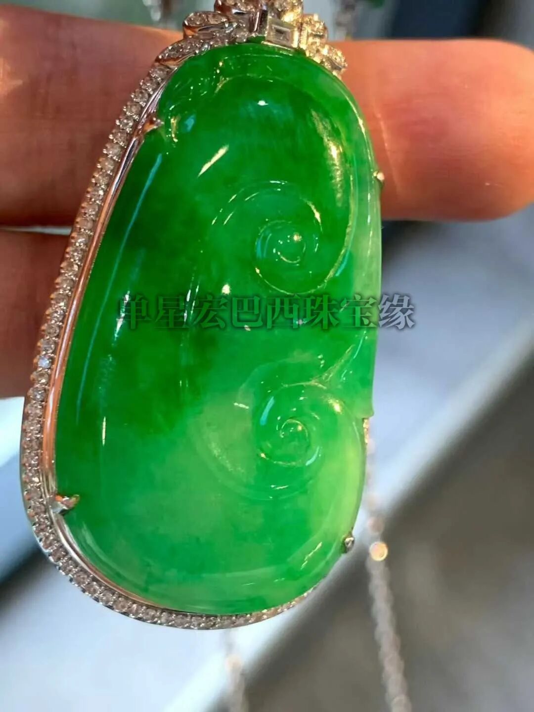 18 k缅甸满绿钻镶 色泽鲜艳 高种高色 一刀切雕刻流畅 完美无纹裂