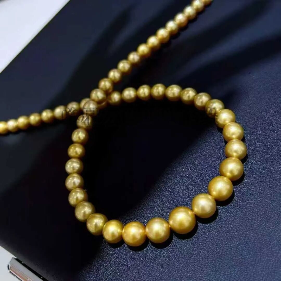 这条真的太美了!!!!我超爱 暴力金果然是让人心动 天然颜色奄美大岛特浓金珠 这个尺寸也满足了很多小姐姐对金珠的渴望 近圆就是一串亮晶晶的小金豆子