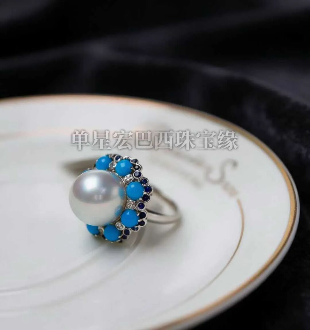 以蔚蓝封藏天地气韵,澳白卧于掌心,温润虹彩如月晕浸染海浪。18K金托托起深海奇迹,斯里兰卡蓝宝石,松石环绕如星环,碎钻在指间倾泻银河——这是人类指尖与自然造物的神圣对谈