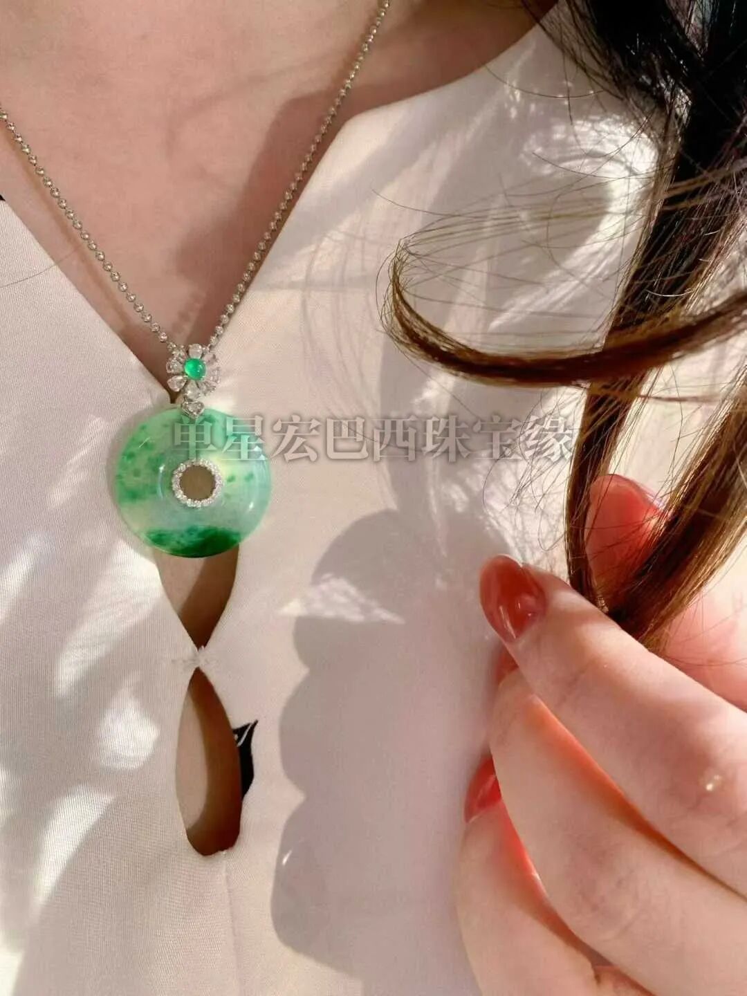 铂金镶嵌的翡翠福瓜,冰种飘绿的玉质莹润通透,翠色如春水漾开。铂金钻边勾勒出灵动线条,藏一份东方雅致,戴一抹腕间清韵。