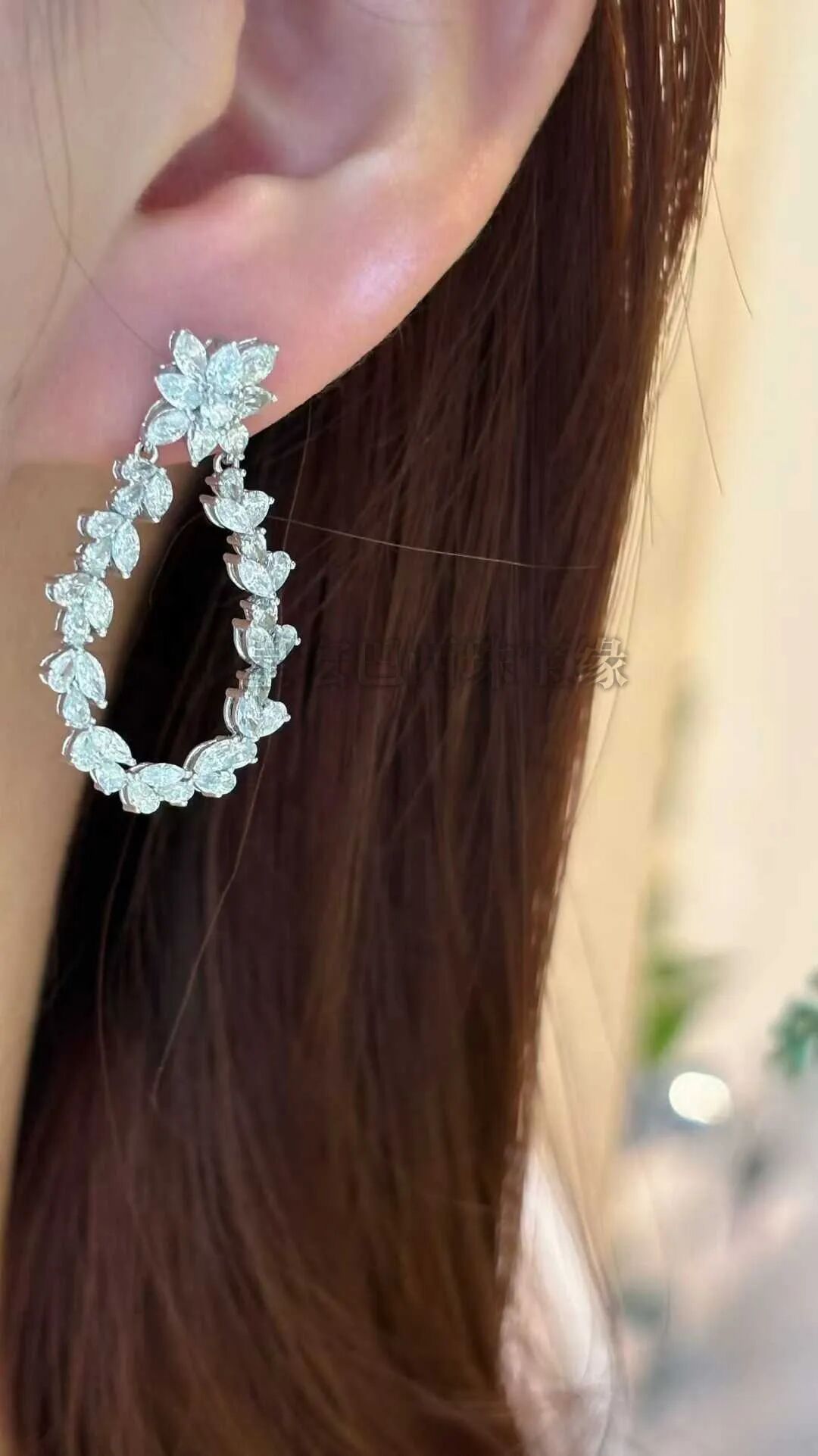 高级钻石花环。大钻白闪亮!奢华气质PT铂金镶嵌