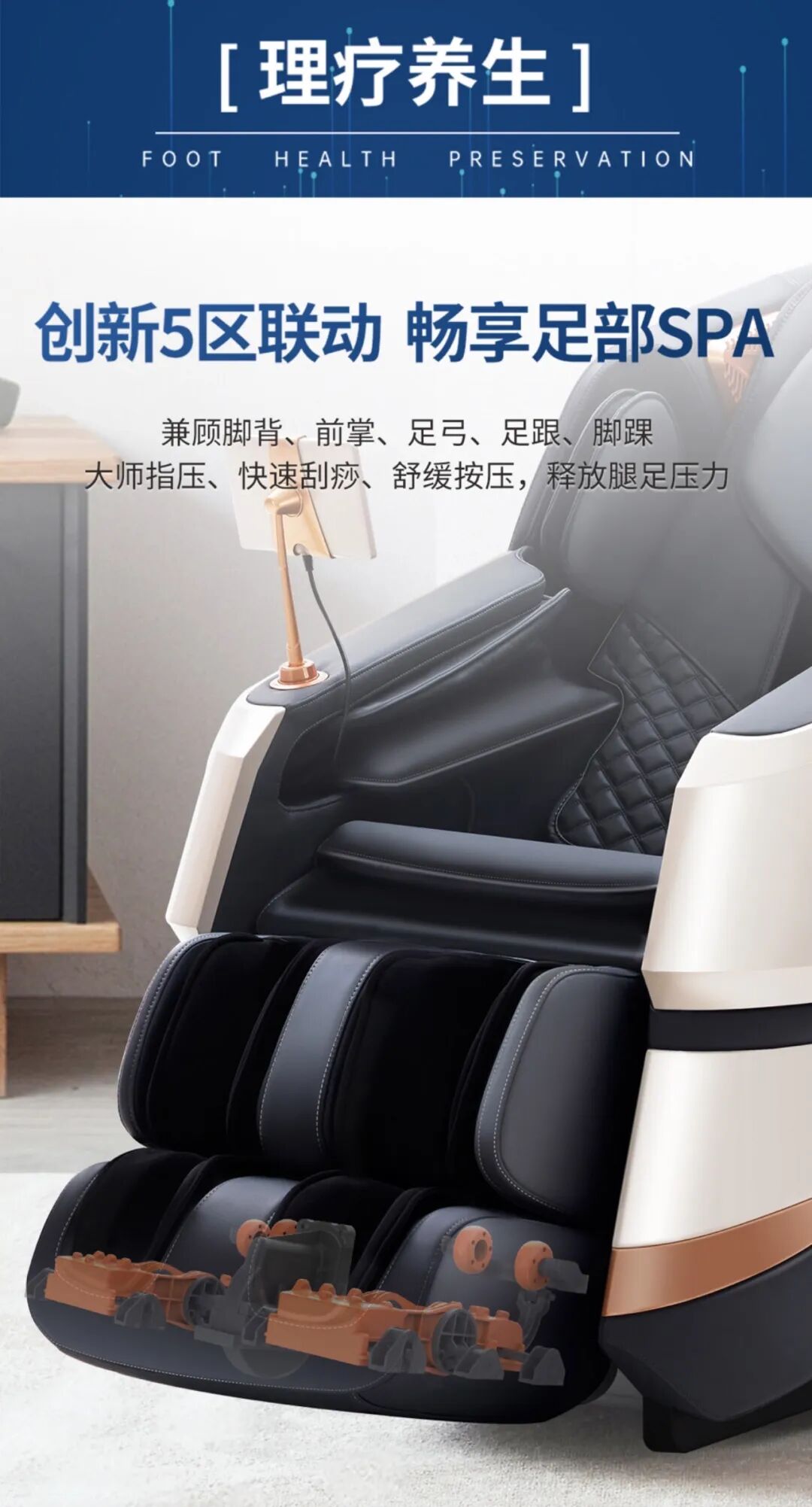 内置蓝牙音响系统,轻松连接您的智能手机或平板电脑,无论是悠扬的旋律还是激情的摇滚,都能让您在享受按摩的同时,沉浸于美妙的音乐世界,身心得到双重放松。
