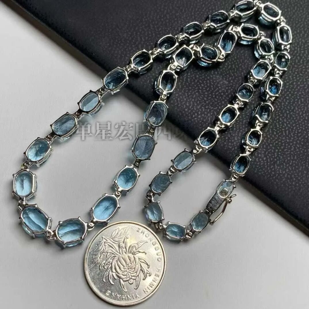 18K天然巴西海蓝宝钻石项链。