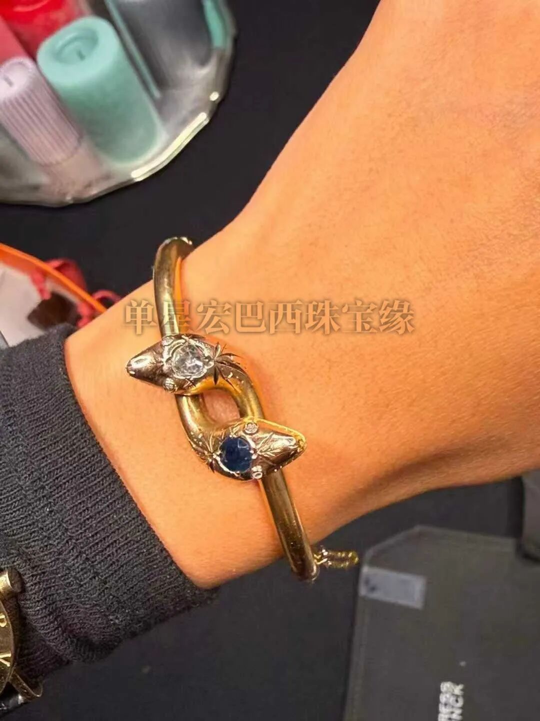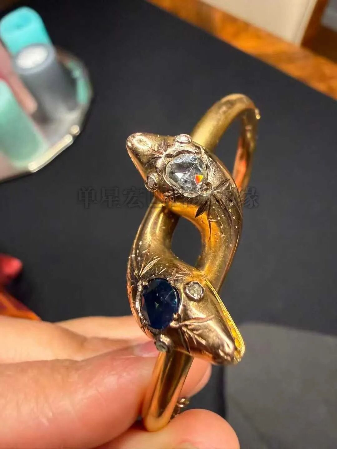 维多利亚时期蛇手镯,18k天然蓝宝石和钻石