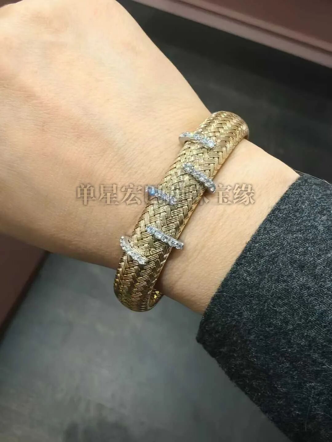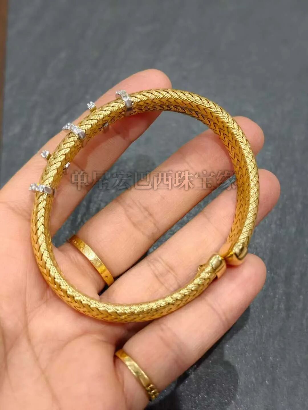 纯银鎏金编织手镯,开口,不限手围,非常百搭