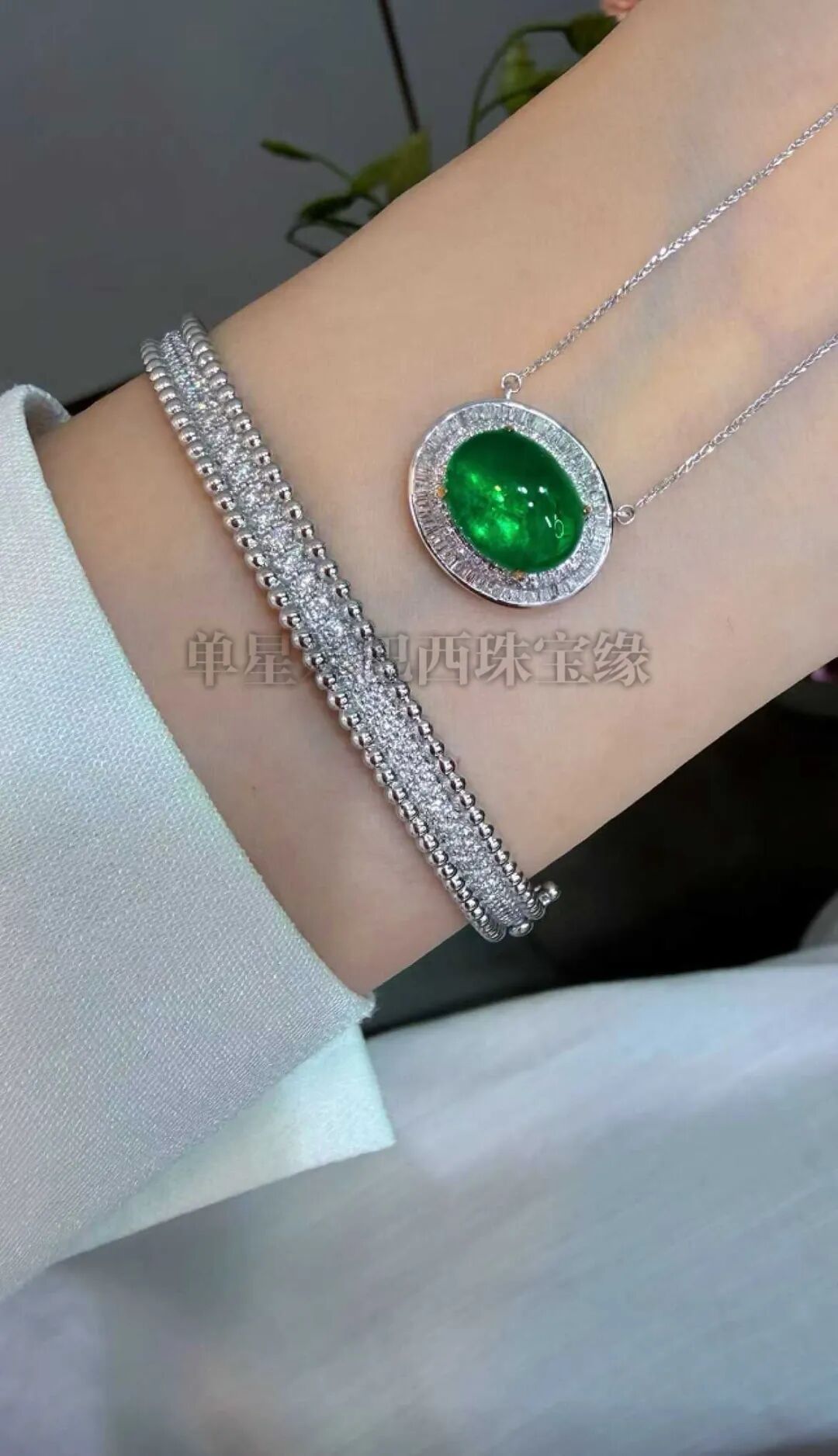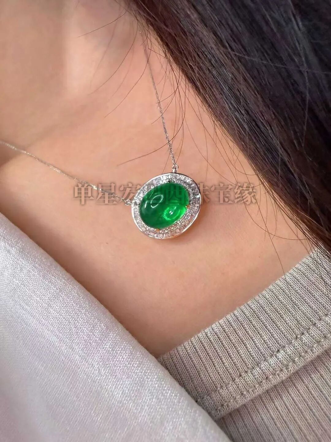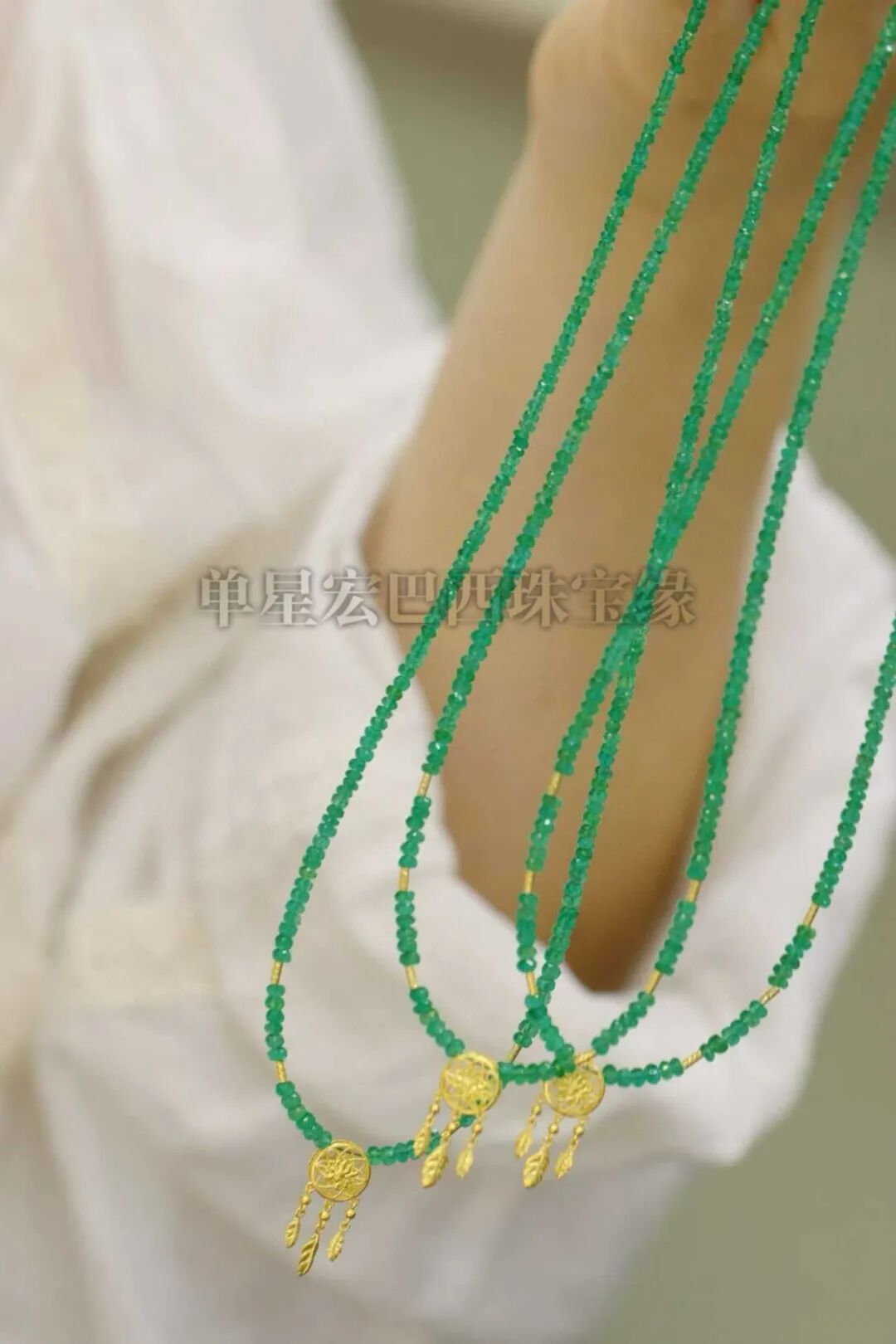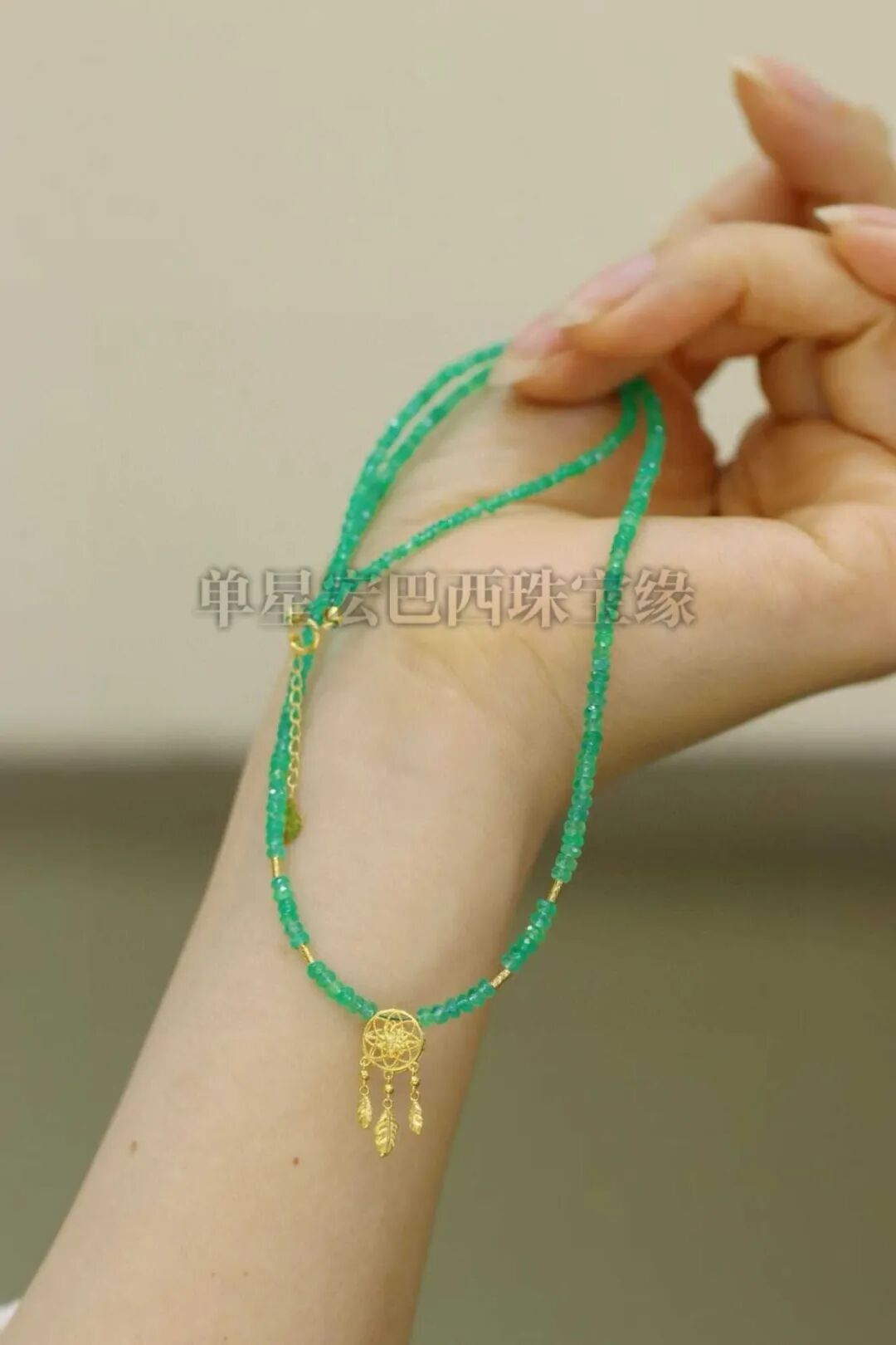 哥伦比亚祖母绿项链,超高品质,刻面切工,晶体干净,颜色浓郁,搭配18k金精致配饰,极简风格,上身高级感拉满!