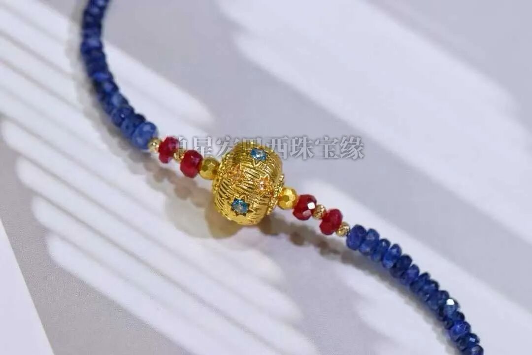 一眼沦陷蓝宝,深邃的蓝像揉碎了的深海夜明珠,搭配18k金,红宝点缀,在腕间泛着细腻又矜贵的光泽,抬手间尽是低调的奢华