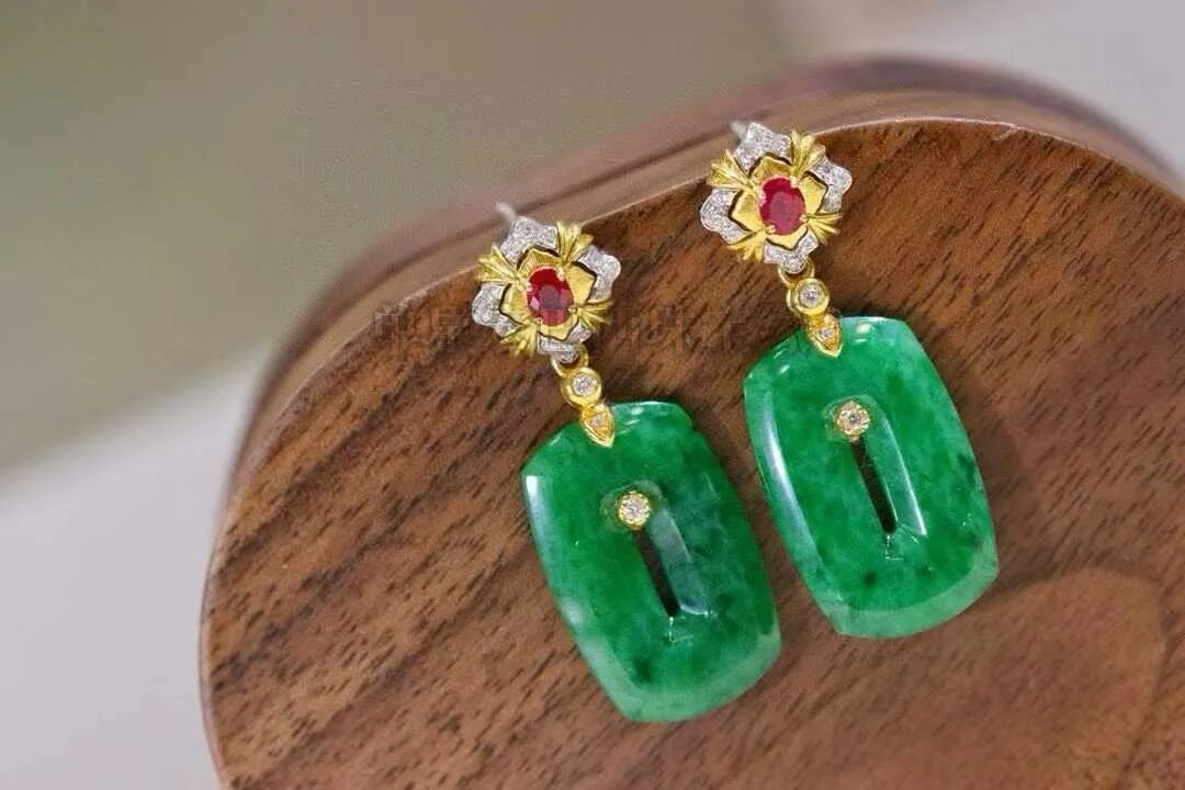 天然翡翠,翡翠的颜色浓郁鲜亮,浓郁而不深沉,鲜亮却不俗气,色泽均匀细腻,18k金镶嵌天然钻石💎红宝石点缀,在光线下熠熠生辉,透着一种独属于东方的含蓄与优雅!
