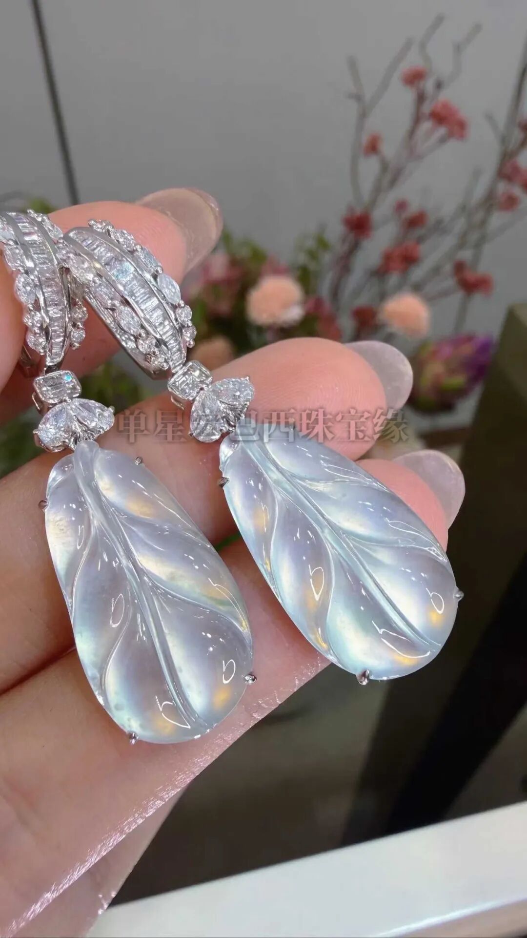 缅料绝美冰种翡翠,刚性十足,18K金钻石1.2克拉奢华群镶