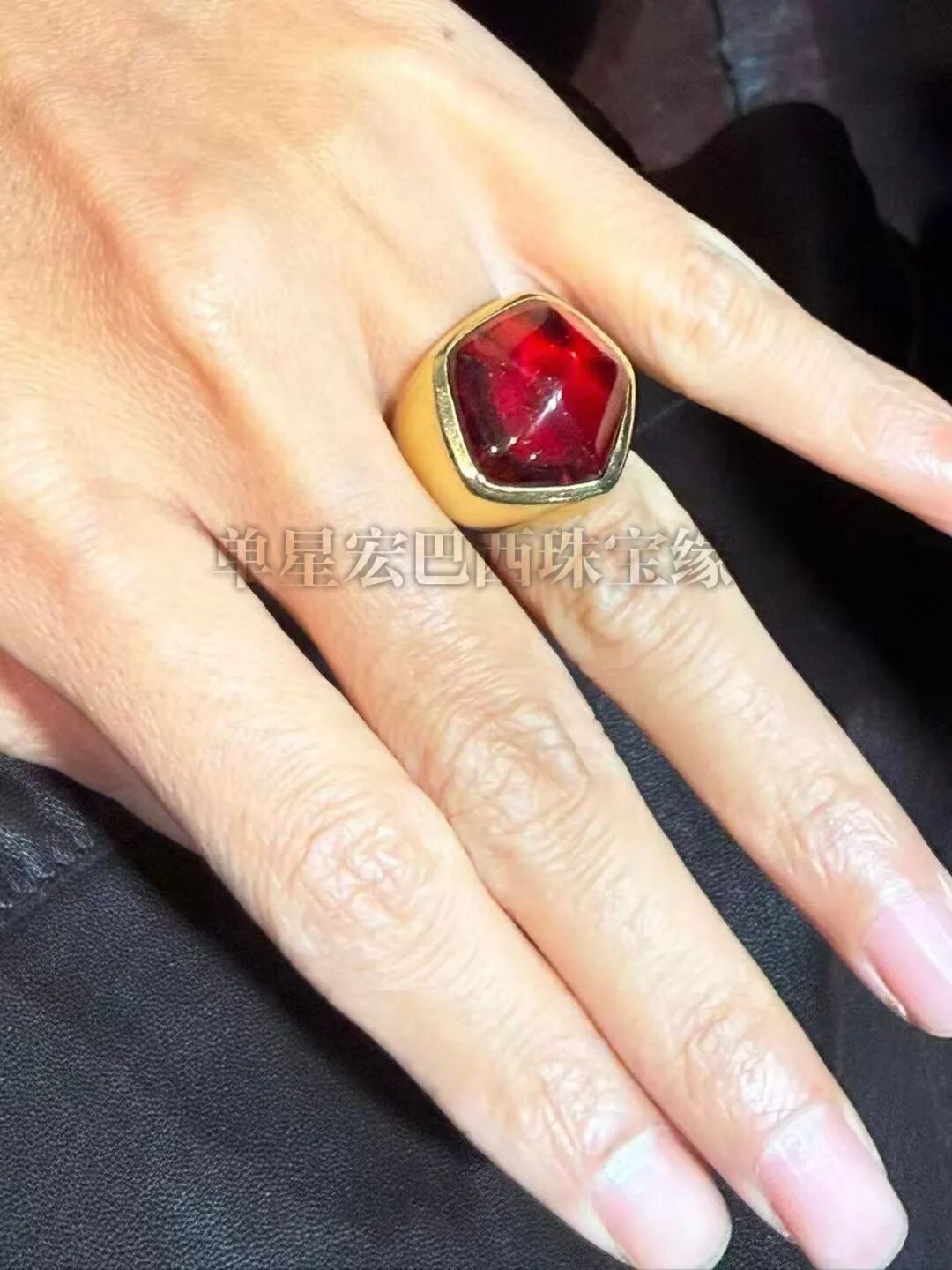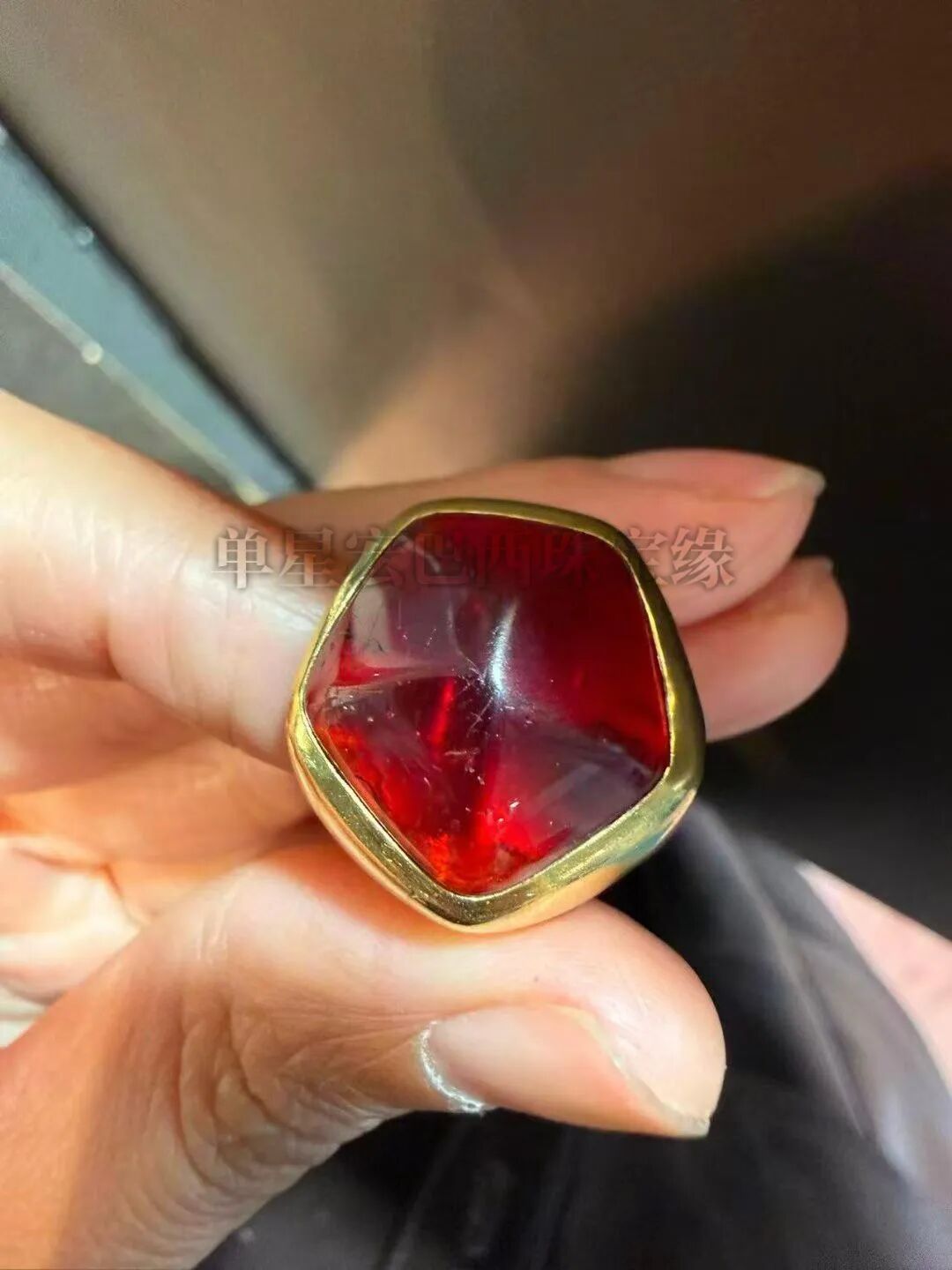 这款戒指结构感很强,红色琉璃,友谊里面有包含物我以为是石榴石